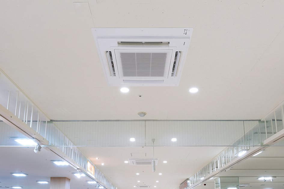 既設のGHPを新設GHPに更新頂きました。その際にナノイーX機能標準搭載の4方向天井カセット形室内機を導入頂きました。