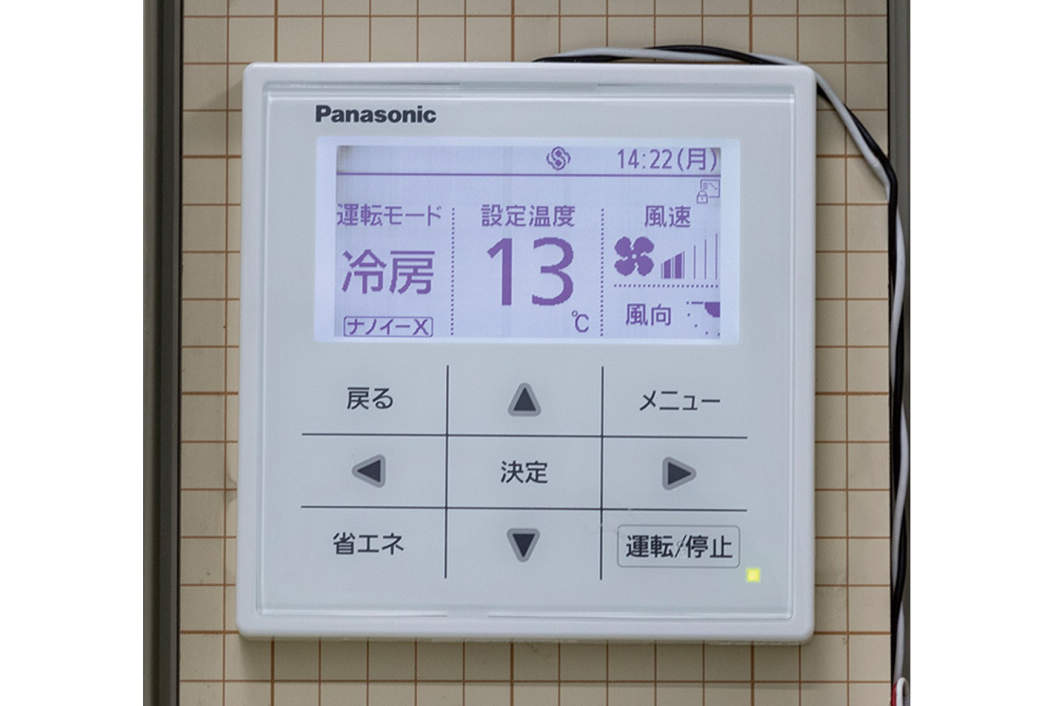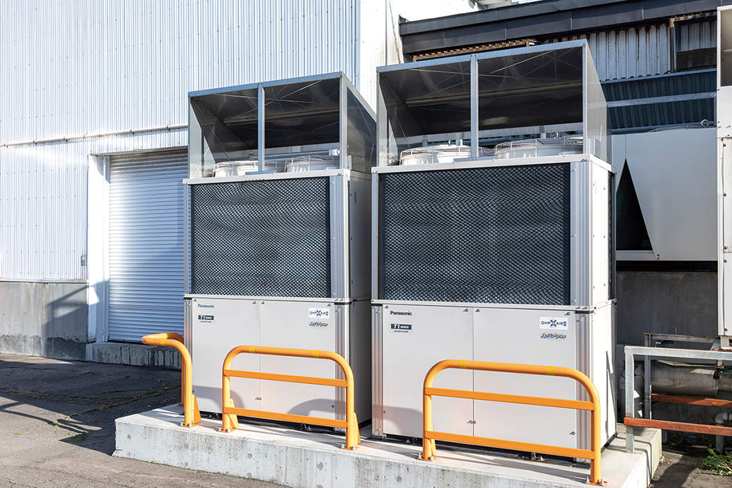 既設のEHPをGHPに更新頂きました。その際にナノイーX機能標準搭載の4方向天井カセット形室内機を導入頂きました。また、中温用エアコンの導入で加工場内の環境も整備。