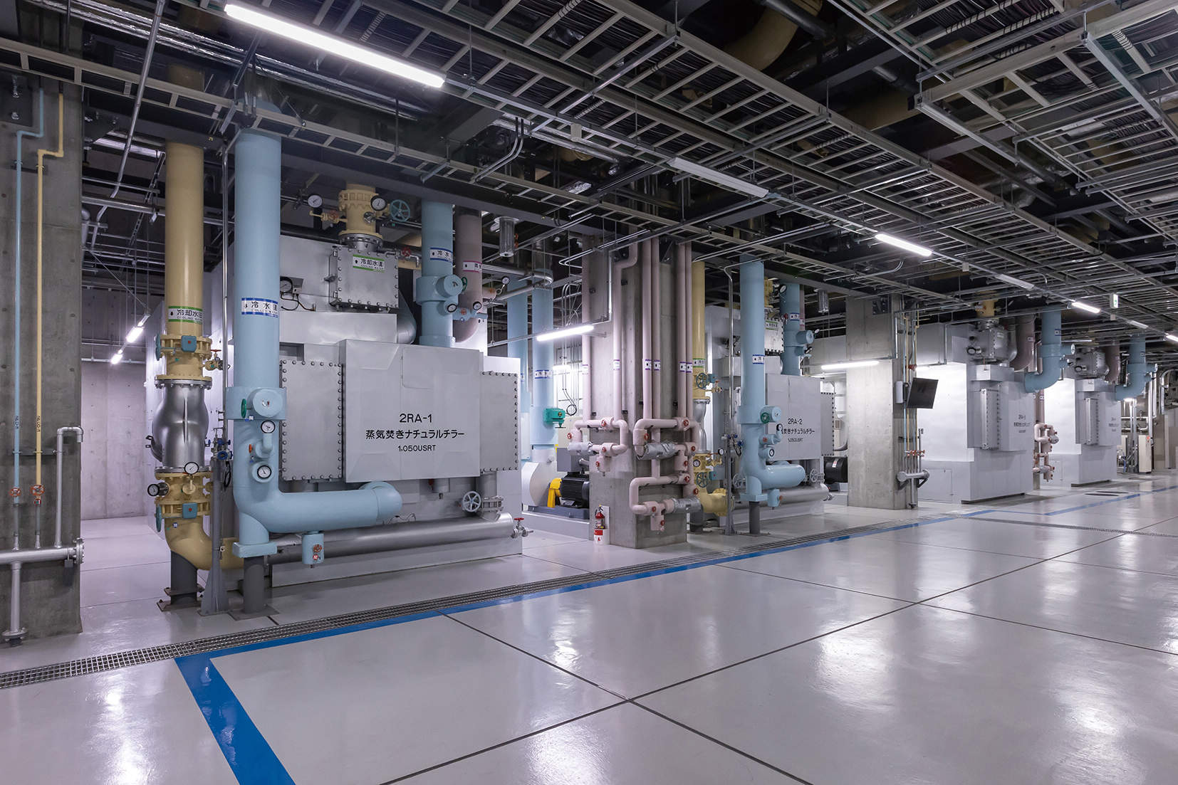 当社の蒸気焚き廃熱利用機2基を含む超大型ナチュラルチラーを合計4基、約5,000RTご採用。廃熱の有効活用を行ったエネルギーの高効率運転に貢献しております。