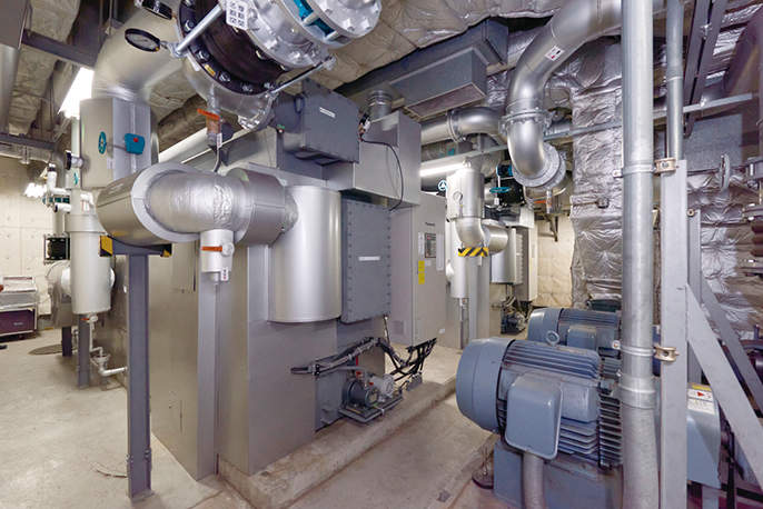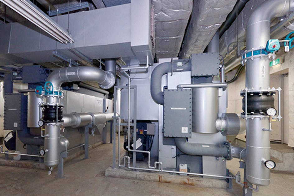 機器のリニューアルにあたり、コンパクト設計で高効率ナチュラルチラーのFシリーズCP型をご採用いただきました。定格時と部分負荷時の効率を共に向上したCP型へのリニューアルで、省エネルギーにも大きく貢献しています。
