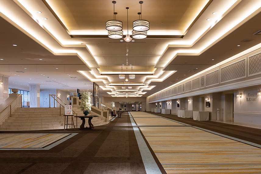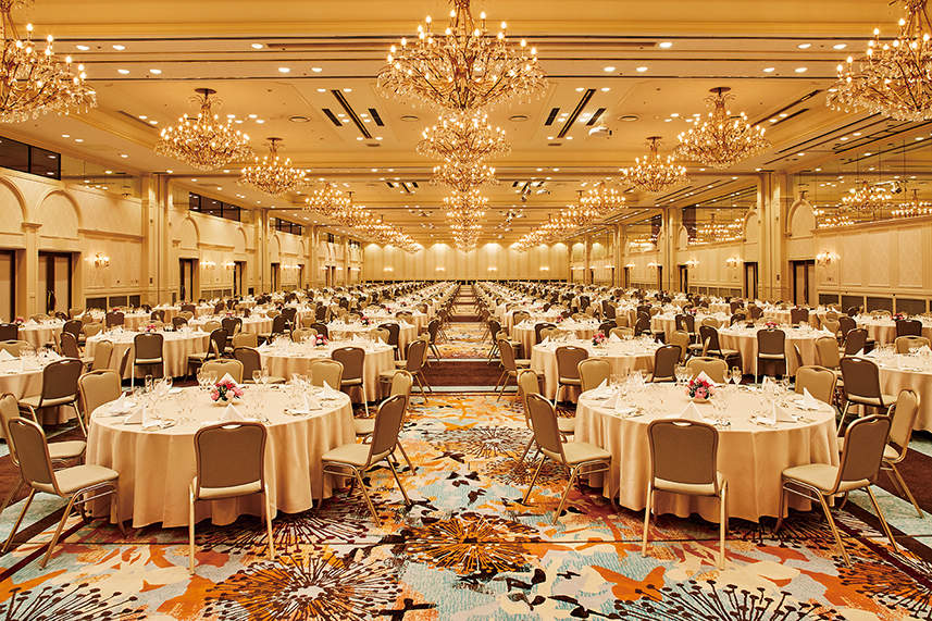最大で6部屋まで分割可能な、面積1,800㎡、天井高6mの舞浜エリアで最大の広さを誇る大宴会場「グランドボールルーム」や、隣接する広さ1,200㎡の宴会ロビー「ホワイエ」などの開放的で広大な空間から、2023年春に全室リニューアルが完了した総数709室の客室や、舞浜エリア最大級のレストランを有するグランドニッコー東京ベイ舞浜様。