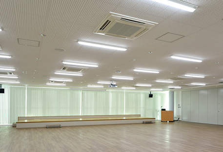 約150人収容できる多目的ホールに、停電時にも使用できるGHPエクセルプラスを導入
