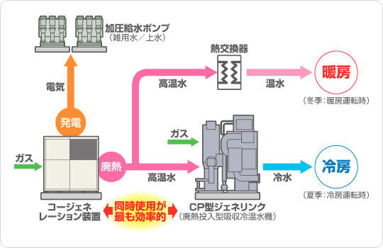 発電機からの廃熱を利用したエネルギーの有効利用により省エネ性の向上に貢献。