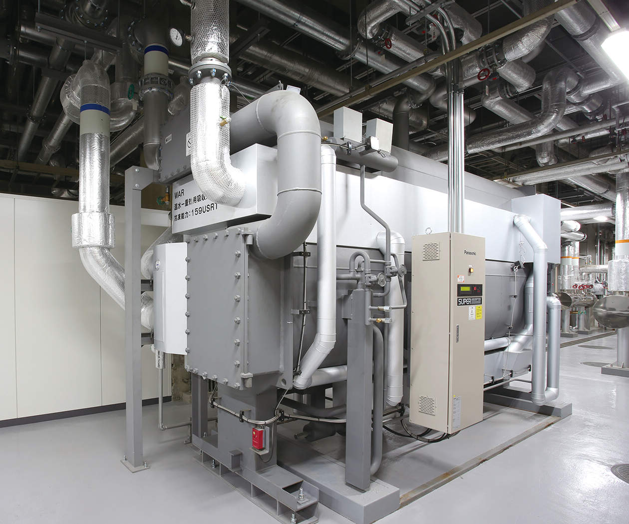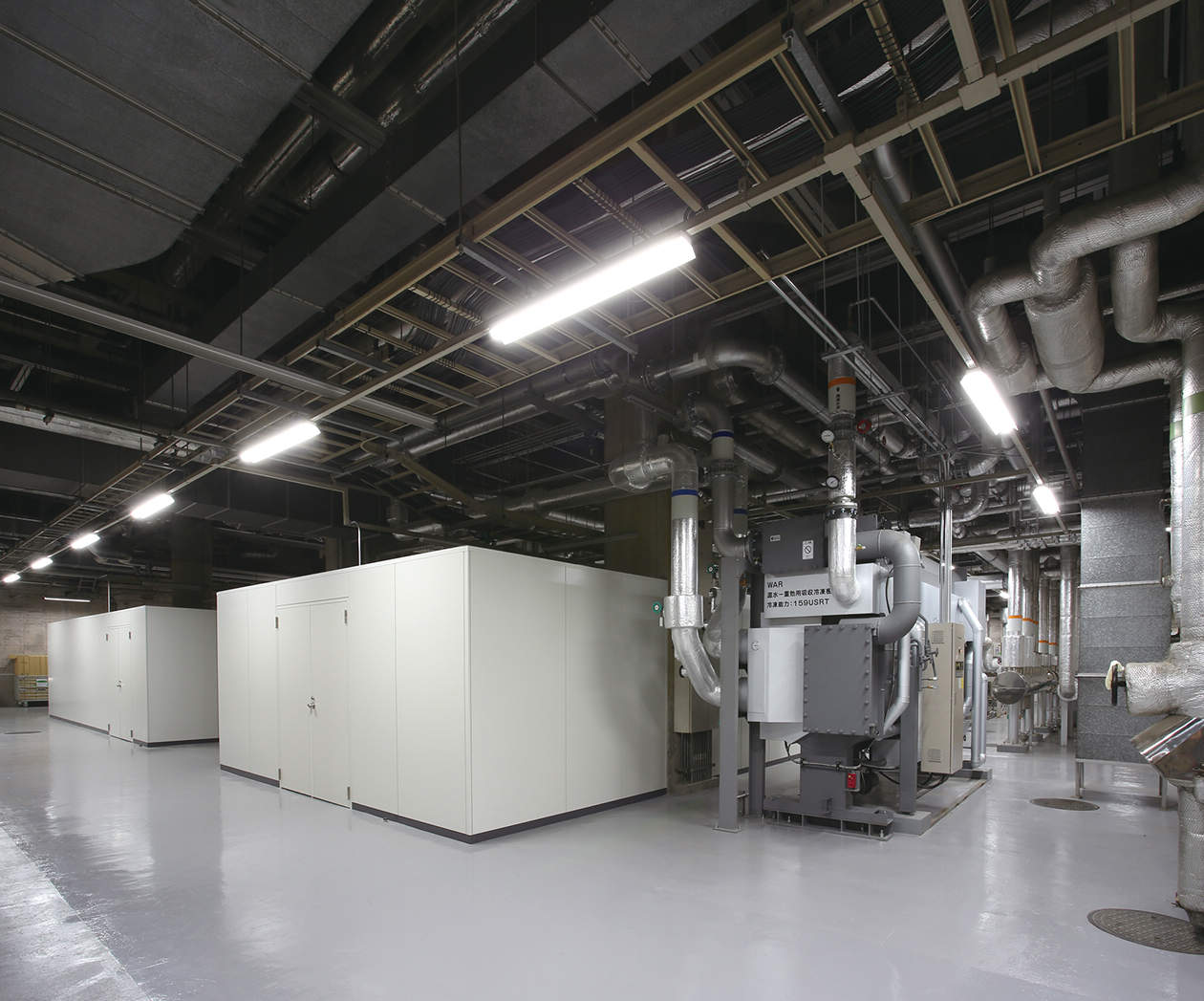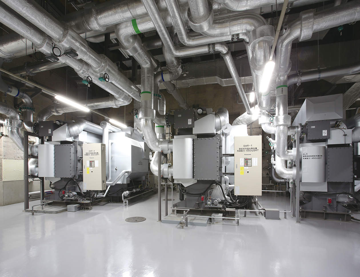 エネルギーセンターと呼ばれる地下部分には、広大なキャンパスで使用する電力をまかなう大型の発電機が設置。その発電機から出る廃熱を利用したコージェネレーションシステムに、当社のCP型ジェネリンクが採用されています。