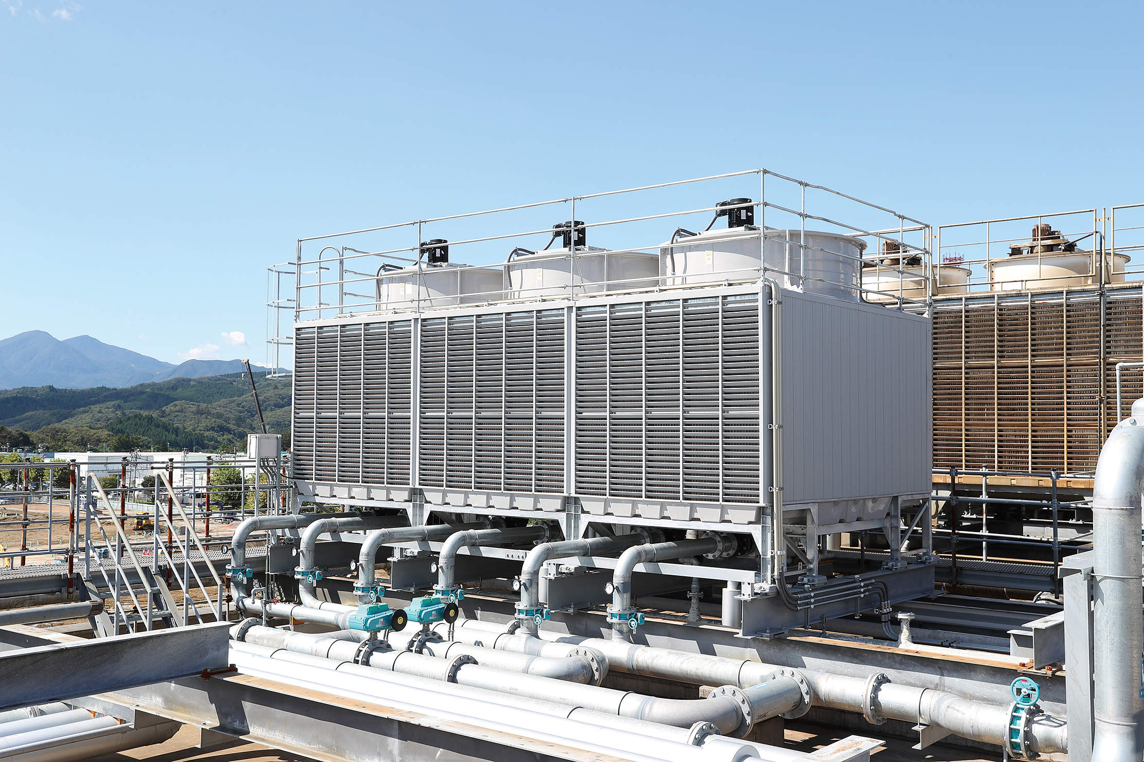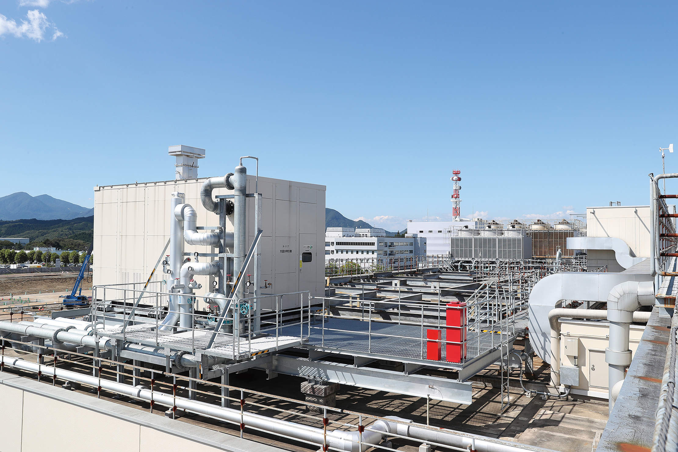 また、機器のコンパクト化・低重量化により、三分割搬入での屋上への設置が実現しました。