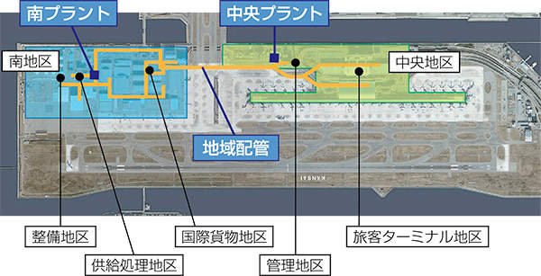 南北長4kmを超える空港島内への各施設に熱供給。