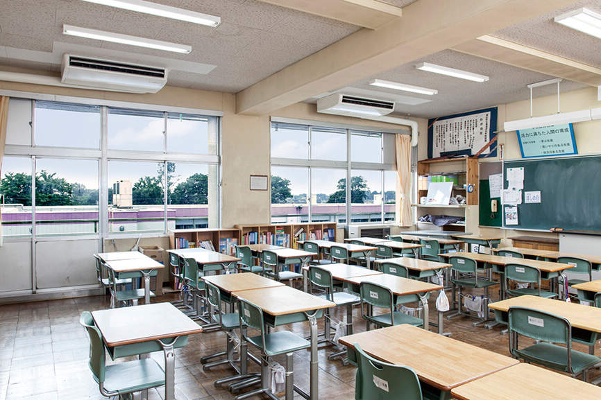 「快適な環境で授業ができ、授業も効率が上がった」「体調不良を訴える生徒が減った」等のコメントが多く、生徒だけではなく、ご父母・教職員にも好評です。教室内の既存扇風機も併用し、温度を均一に保てるようにしています。空調機の故障、騒音・振動、近くにお住まいの方からの苦情等は一切なく、順調に稼働しています。