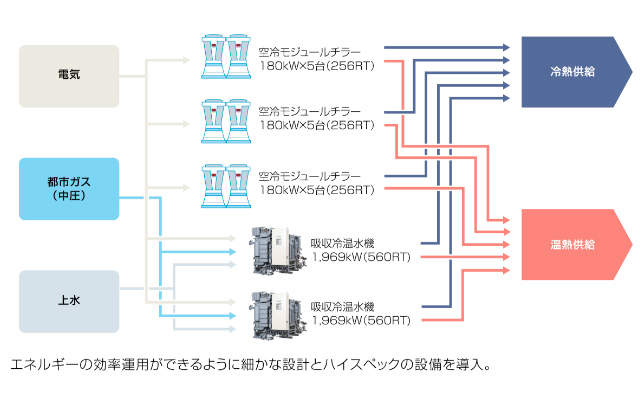 新長崎駅ビルでは環境課題に応えると同時に、安定したエネルギー供給が求められました。