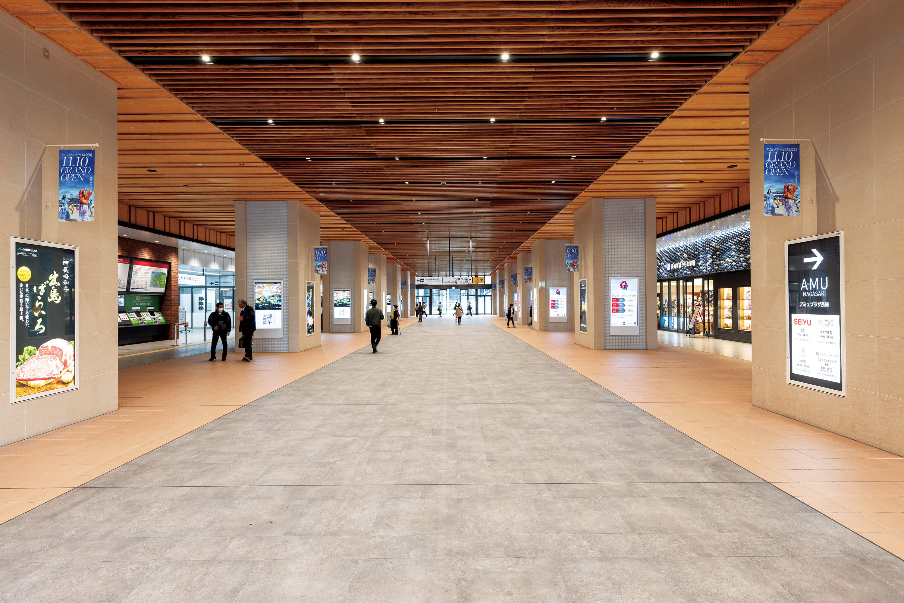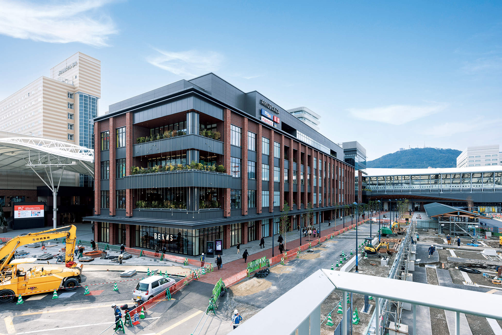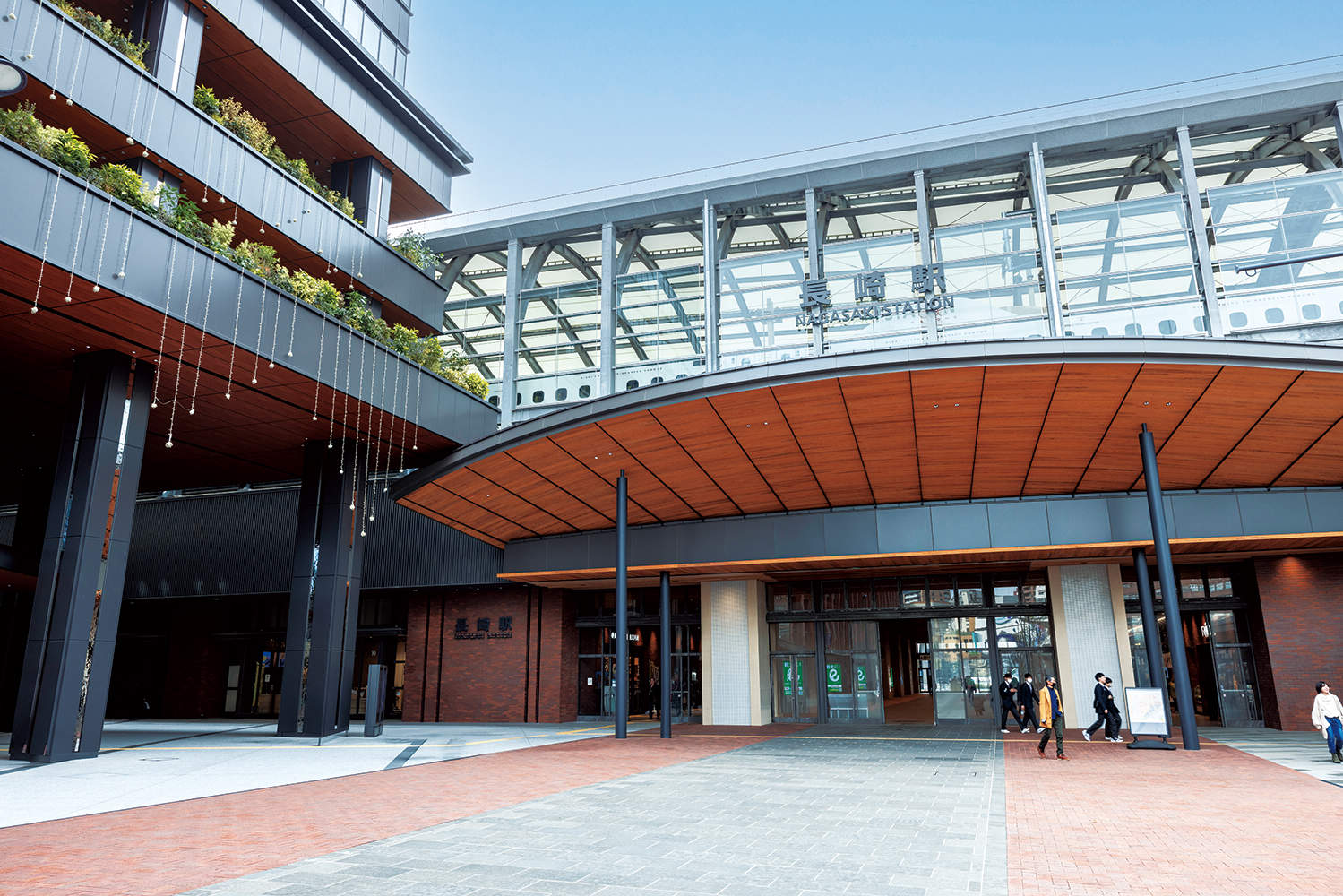 2022年9月、西九州新幹線の開業を契機に、新たな陸の玄関口として誕生した新長崎駅ビル。地上13階、延床面積10万2千平方メートル。高層階(7~13階)には長崎マリオットホテル、中層階(5・6階)にオフィス、低層階(1~5階)に商業を配した複合型駅ビルです。