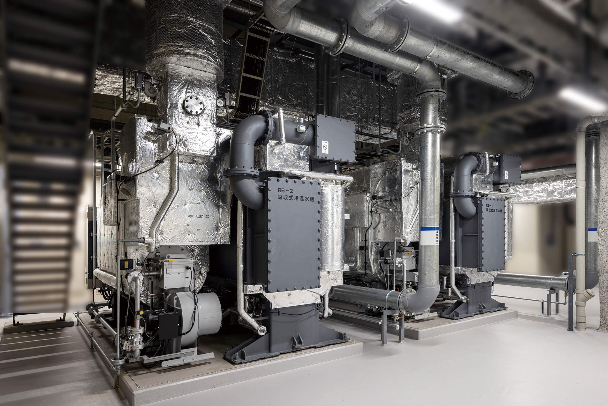 今回、新長崎駅ビルに導入されたのは、節電型ナチュラルチラーPR型の吸収冷温水機。従来型に比べ冷却水流量の大幅削減と高効率・高部分負荷効率により動力・燃料の削減を図ります。
