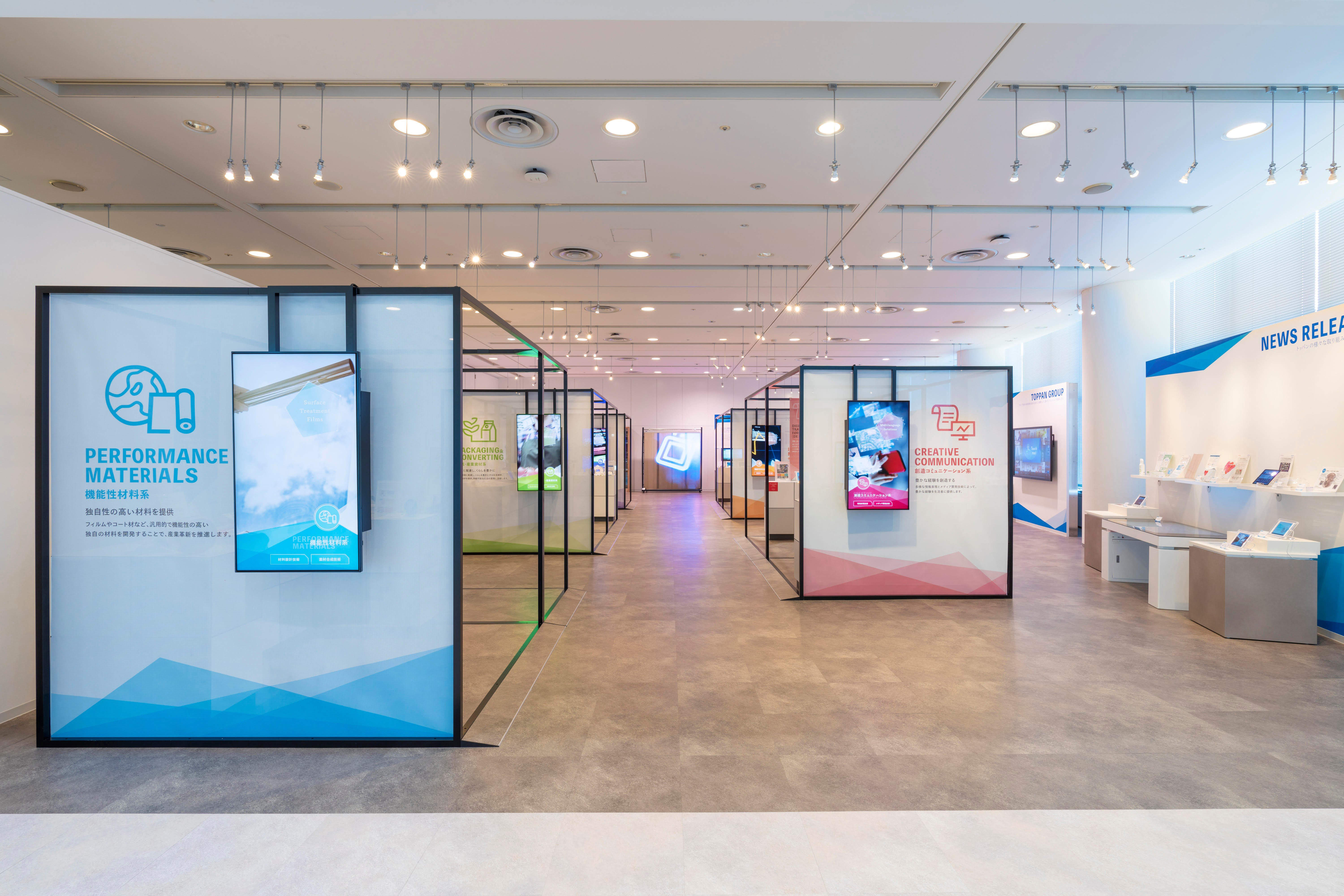 「PLAZA21小石川」では、『印刷テクノロジーは、進化し続ける』をキャッチコピーとし、約120年の歴史の中で培ってきた印刷テクノロジーを進化・発展させた技術・ノウハウからなる『5つの系』を軸に様々な商材・サービスを展示しています。