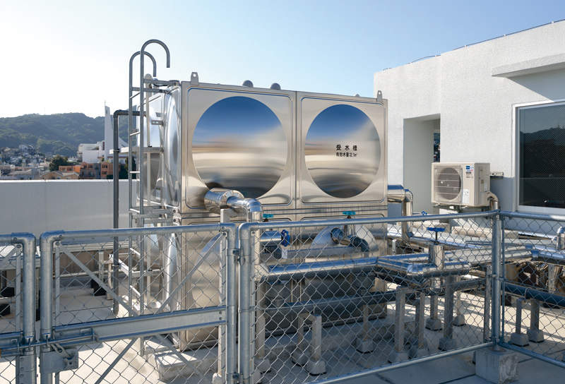 また災害時の対策として、GHPと太陽光で発電した電気の利用や、屋上に受水槽を設置するなど緊急対策本部としての機能を設け、いつでも地域のお客さまに開放できる施設として事業運営されています。