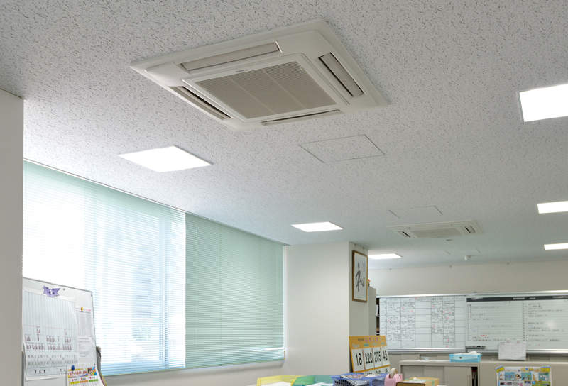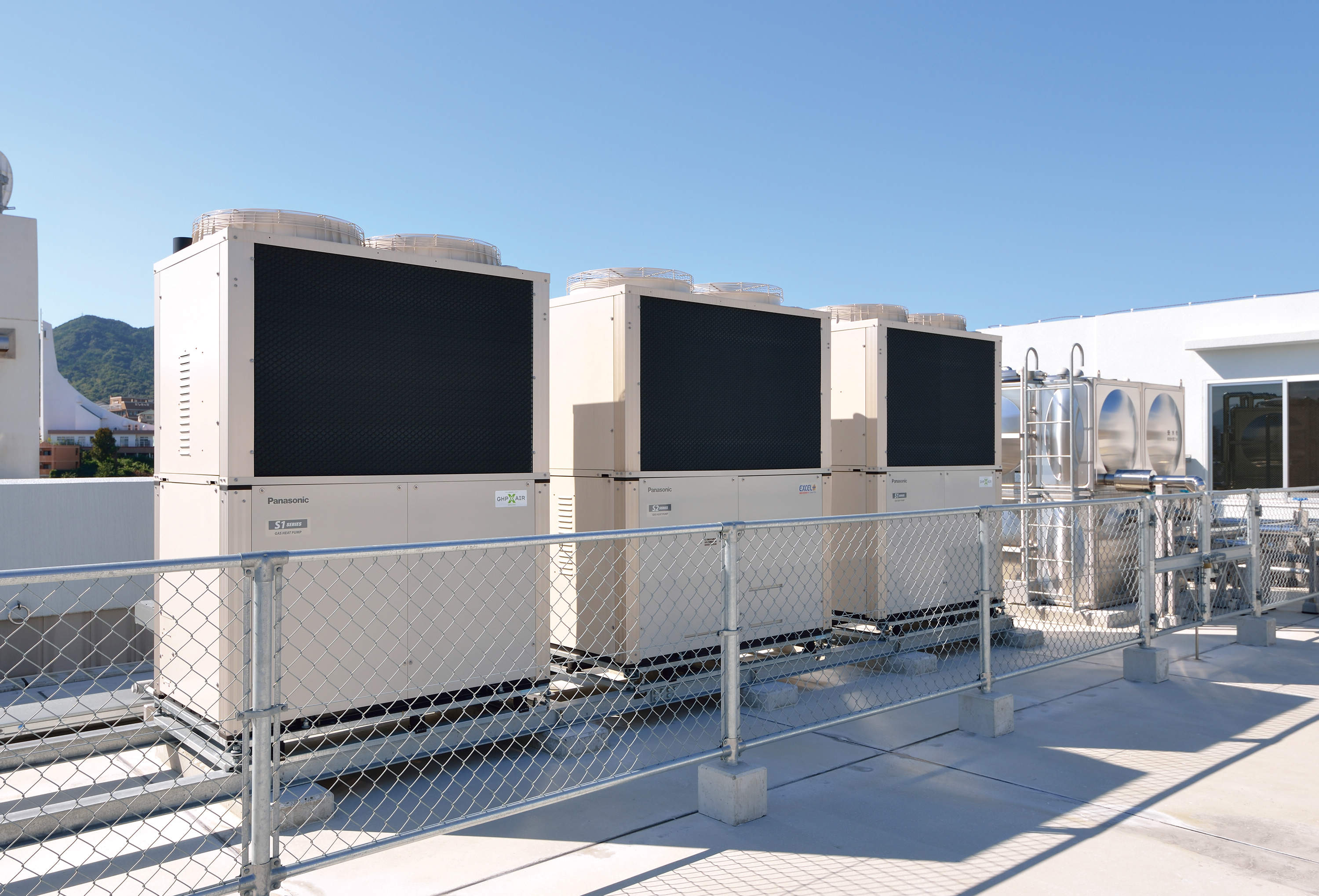 建物建替えにあたっては、BCP対策できる施策について西部ガス様へ相談したところ、タイミングよく、パナソニック製の停電自立型空調の空調機(エクセルプラスS形)が発売された時期でもありました。