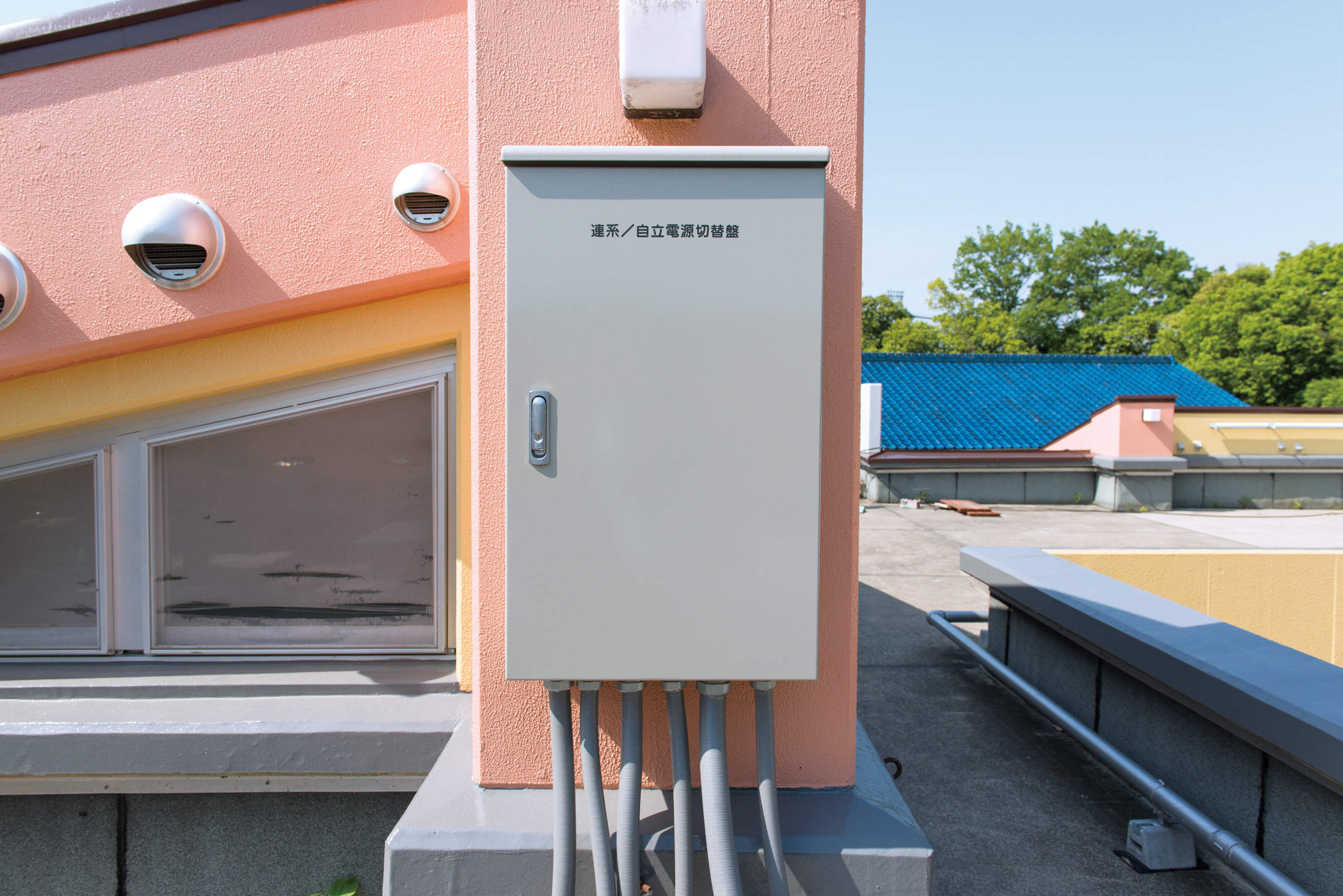 災害時などのもしもの場合の避難場所としての役割を重視し、エクセルプラスを児童の食事や遊戯に使われるランチルームに設置。緊急時の空調と、照明・電話などの電力を確保しています。