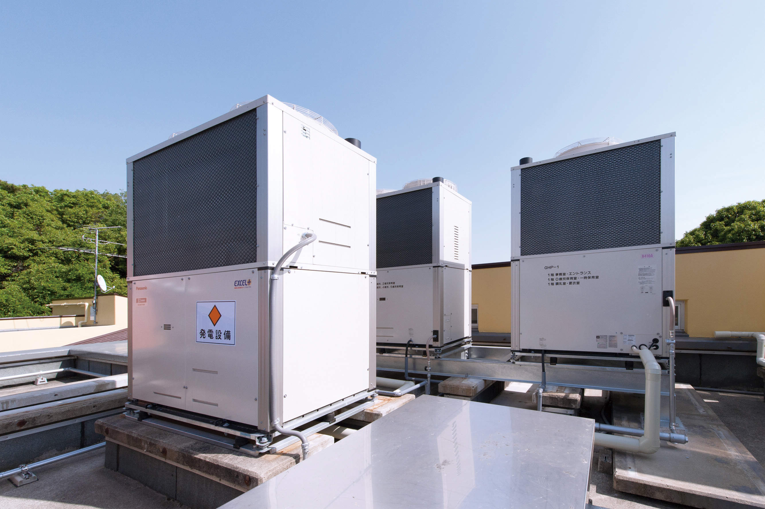 従来設置していた電気式の個別空調に代わって3台のGHP(ガスヒートポンプエアコン)を導入しました。