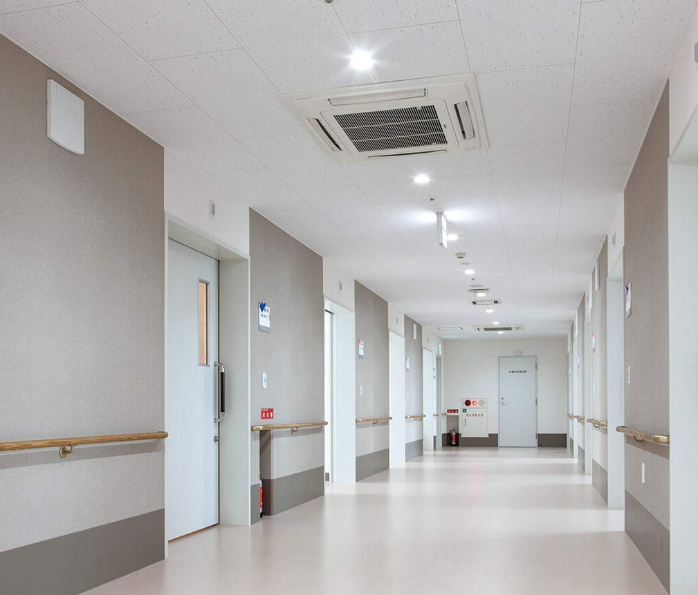 特別養護老人ホームあい亀田港様は、閑静な住宅街の中に建てられ、近くには公園や病院等もある地域に密着した施設です。