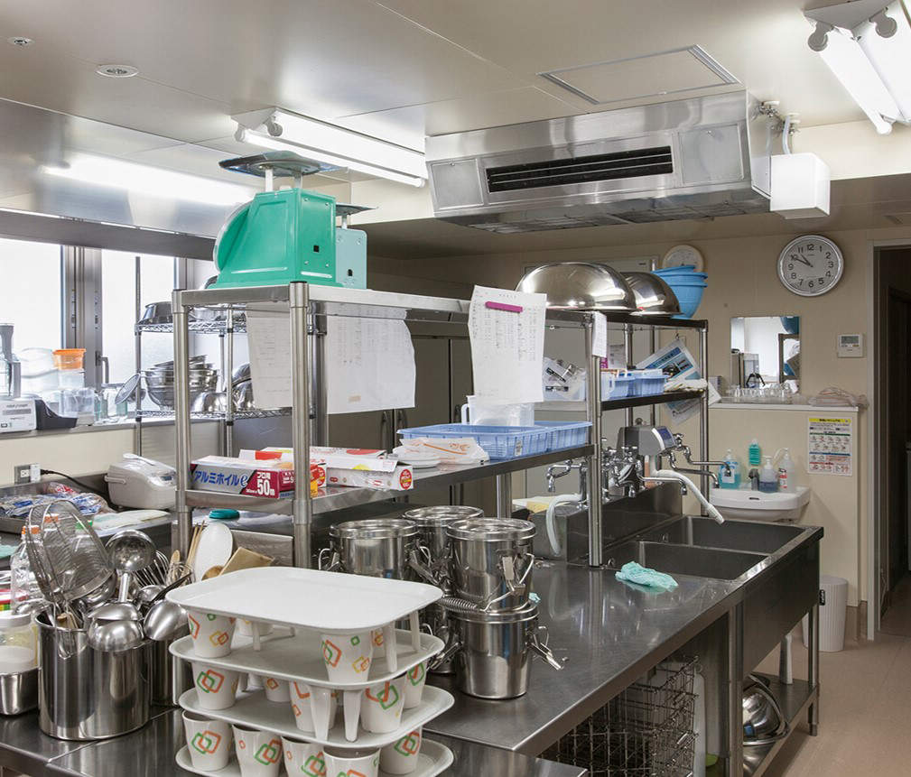 厨房にエアコンを入れたことで、作業者が快適に業務に取り組めるようになったと好評です。またエネルギーのコスト削減にも貢献しています。
