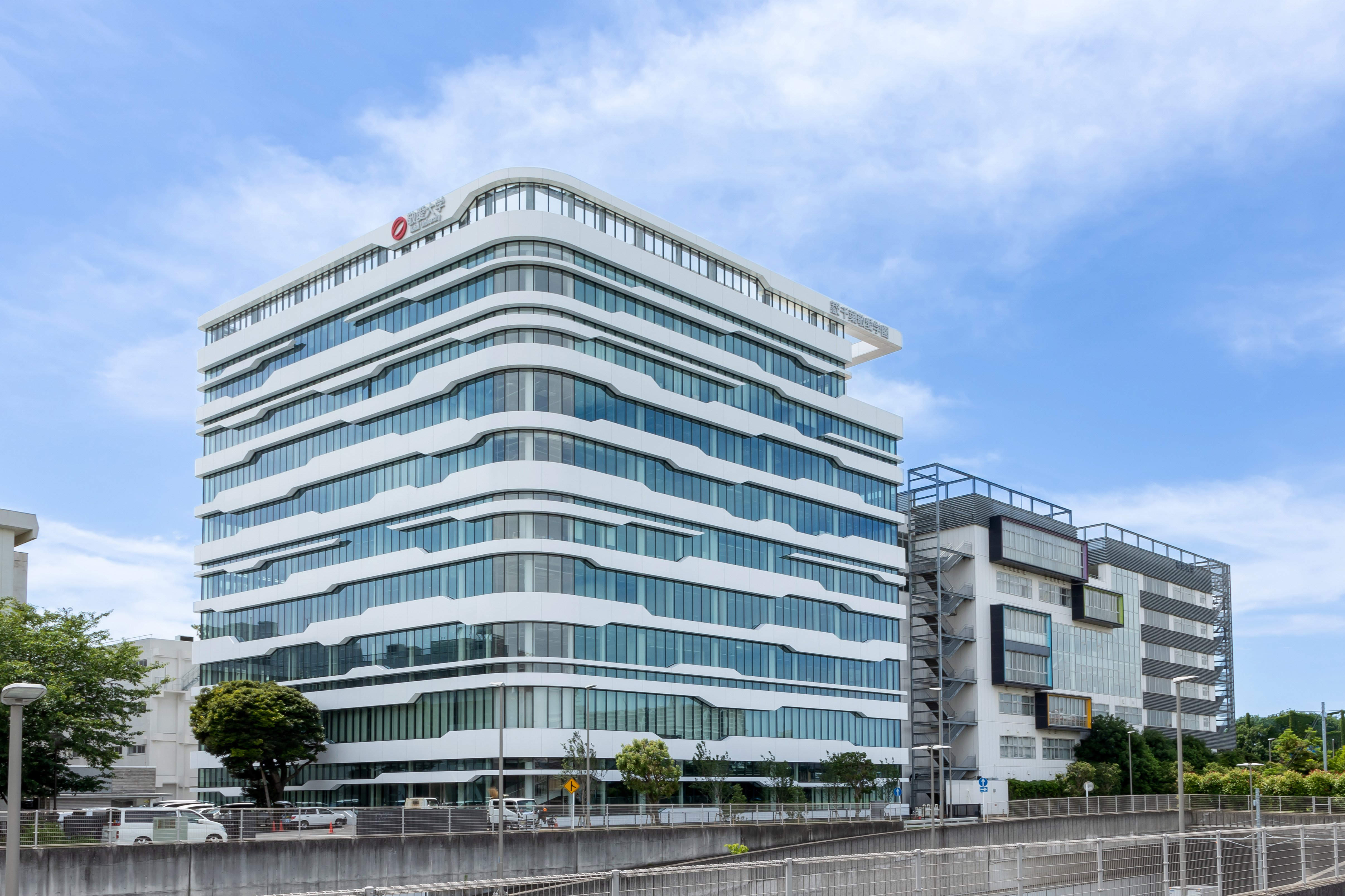 また、一部施設を近隣住民へ開放するなど地域交流の機能も有します。大学や高校が集まる文教地区で街と調和する「地域のランドマーク」を目指しました。外観は「青空に浮かぶ白い雲」をモチーフに、アルミカットパネルとガラスサッシを施したデザインを採用し、内部は明るく開放的な空間となっています。