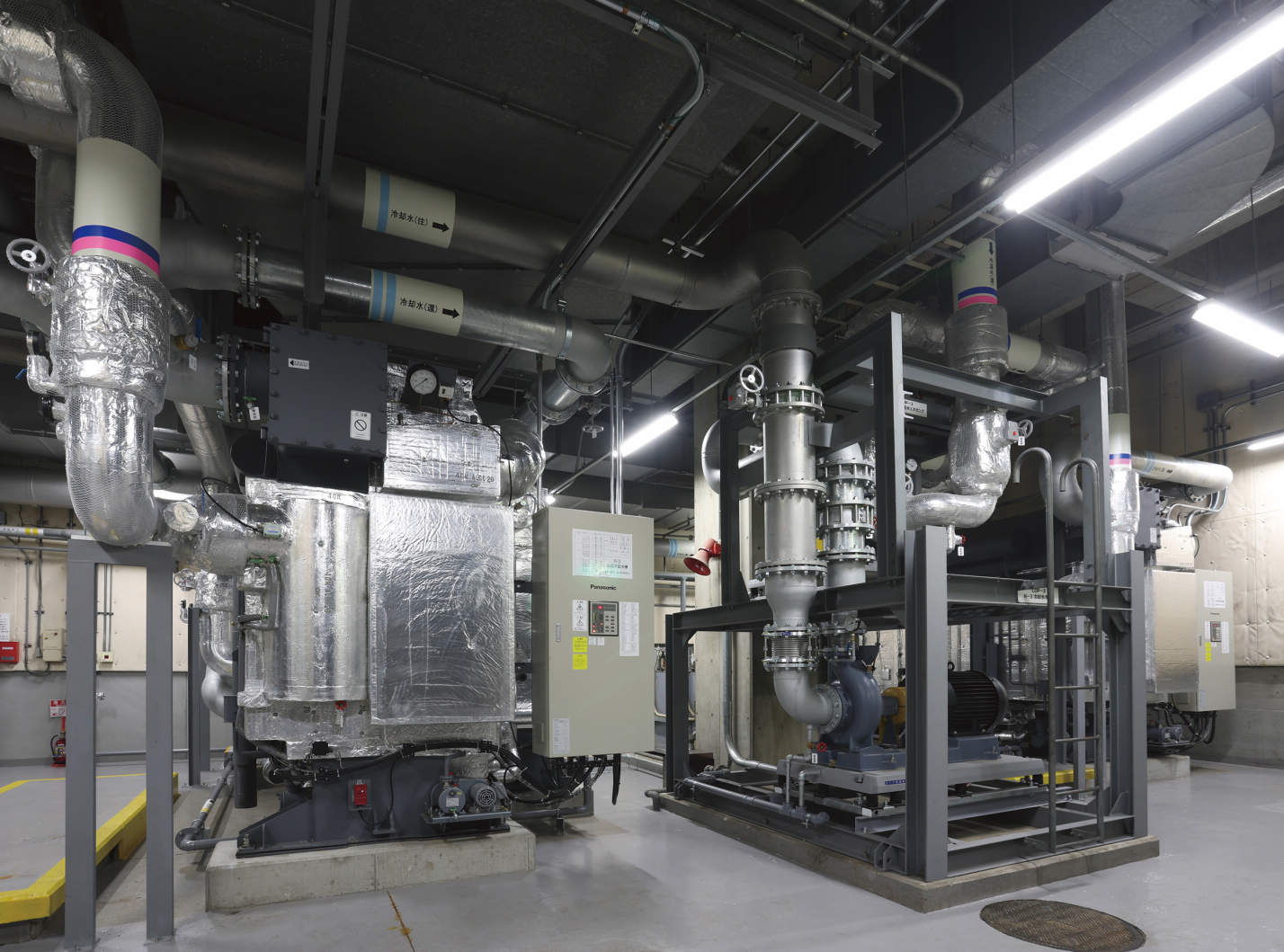 イベント時には空調負荷が大きく変動するため、本ドーム施設では高効率運転と信頼性の向上を目指し、開業当初から電気とガスのベストミックスによる空調設備設計が行われています。
