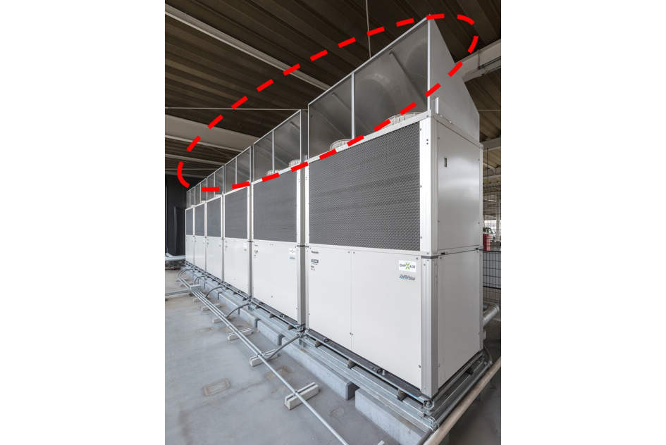 熱気がこもりやすい駐車場では防雪フードを使用し熱風をコントロールしています。