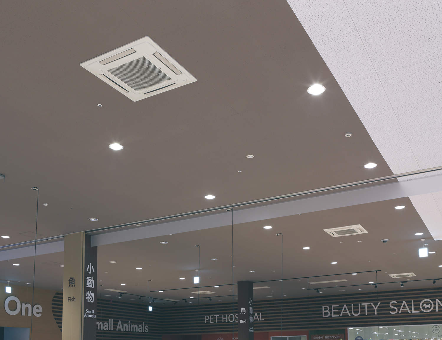 GHPビル用マルチ(30馬力)26台をベースとして、売場環境に合わせて効果的にPACを採用し、広々として見通しの良い店内をすみずみまで効率よく快適に空調。