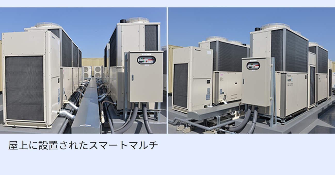 当社スマートマルチを約100馬力使用いただいております。遠隔制御サービスで最適制御することにより、EHPで空調する場合と比べて空調のエネルギーコストを年間約40%削減することを目標としています。