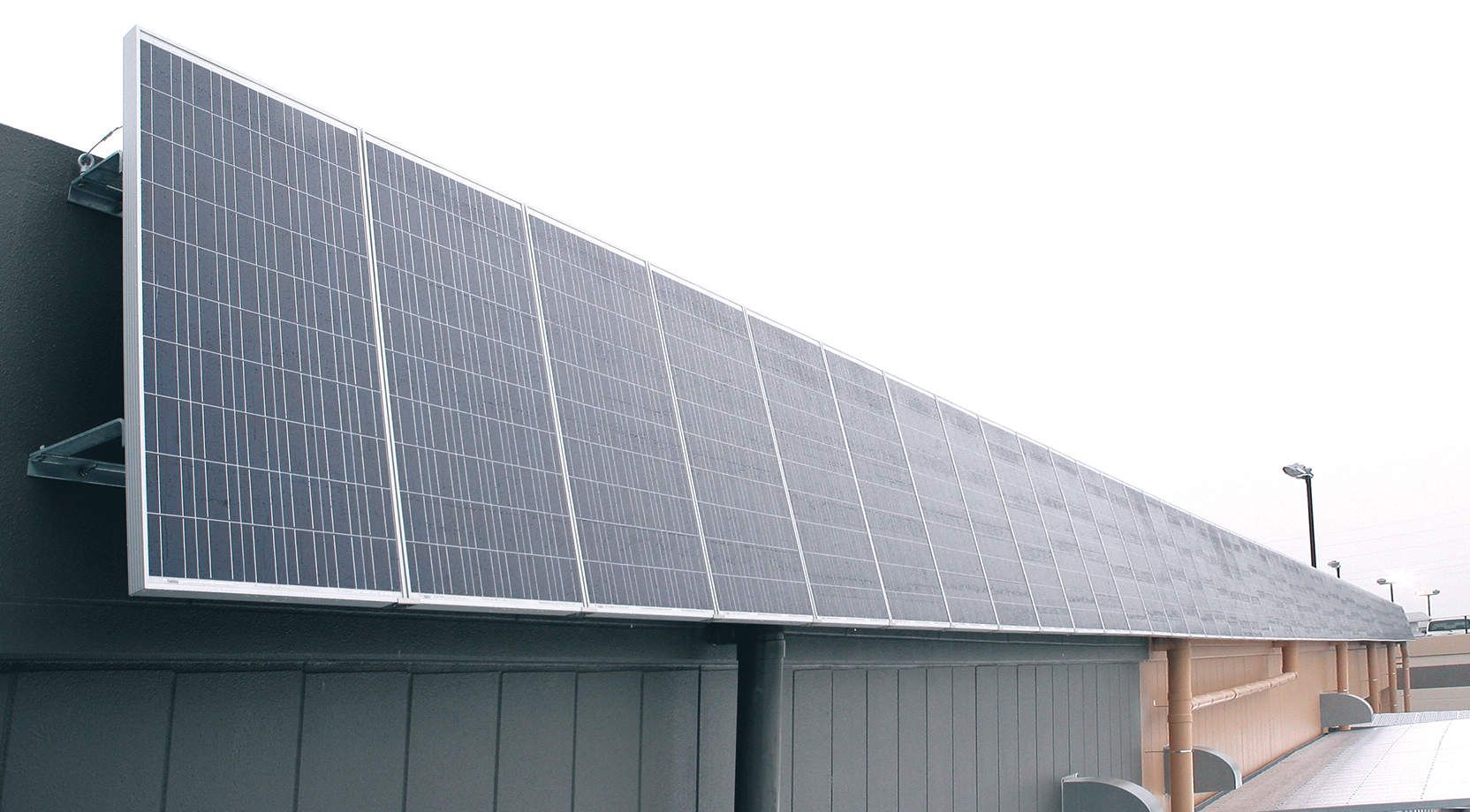 発電効率の高いソーラーパネルを店舗外壁各所に効果的に設置することで、省エネ性の高い店舗を実現しています。